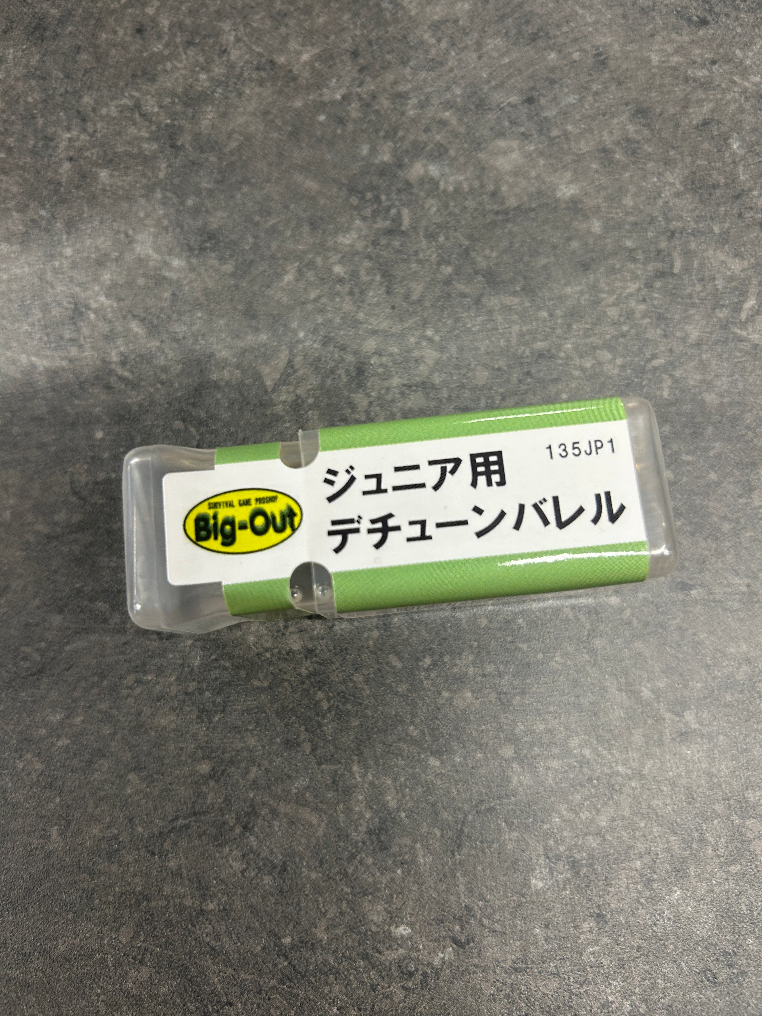 東京マルイ電動ガン準拠のホップシステムのインナーバレルをこの製品に交換するだけで18歳以上の電動ガンを、0.135J以内にして10歳以上対応の電動ガンとしてディチューンする事を目的とした調整用カスタムパーツです。