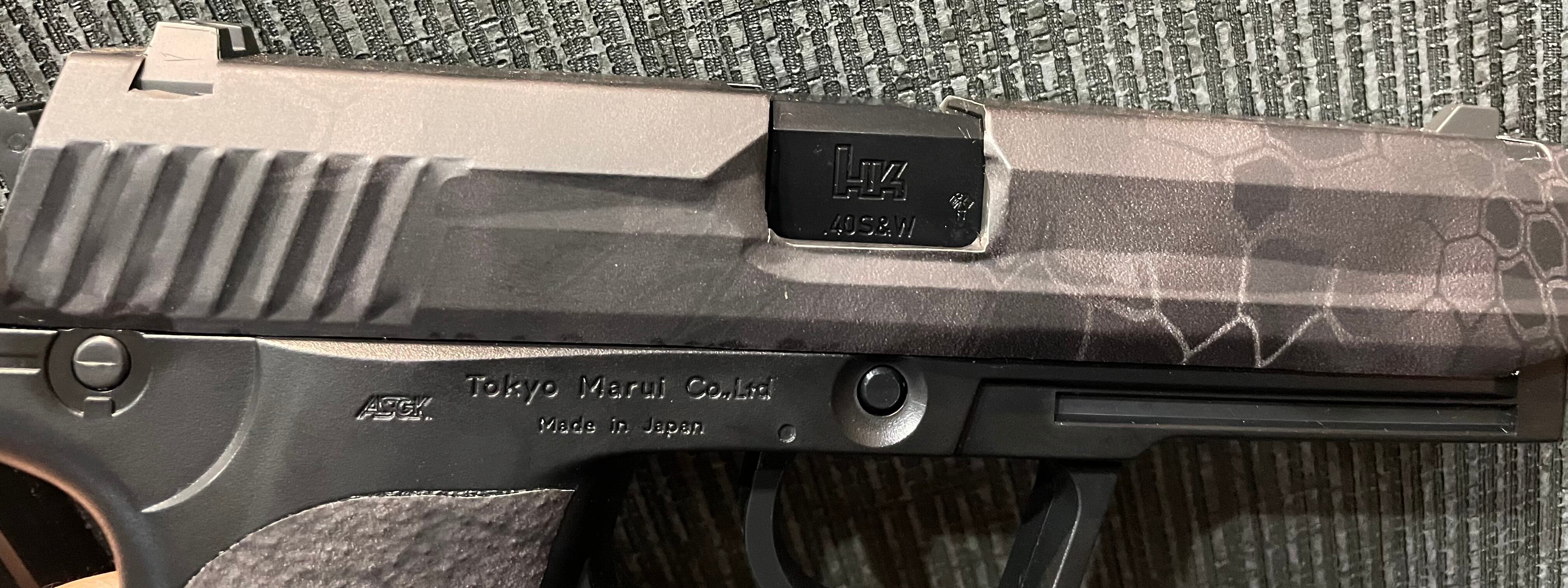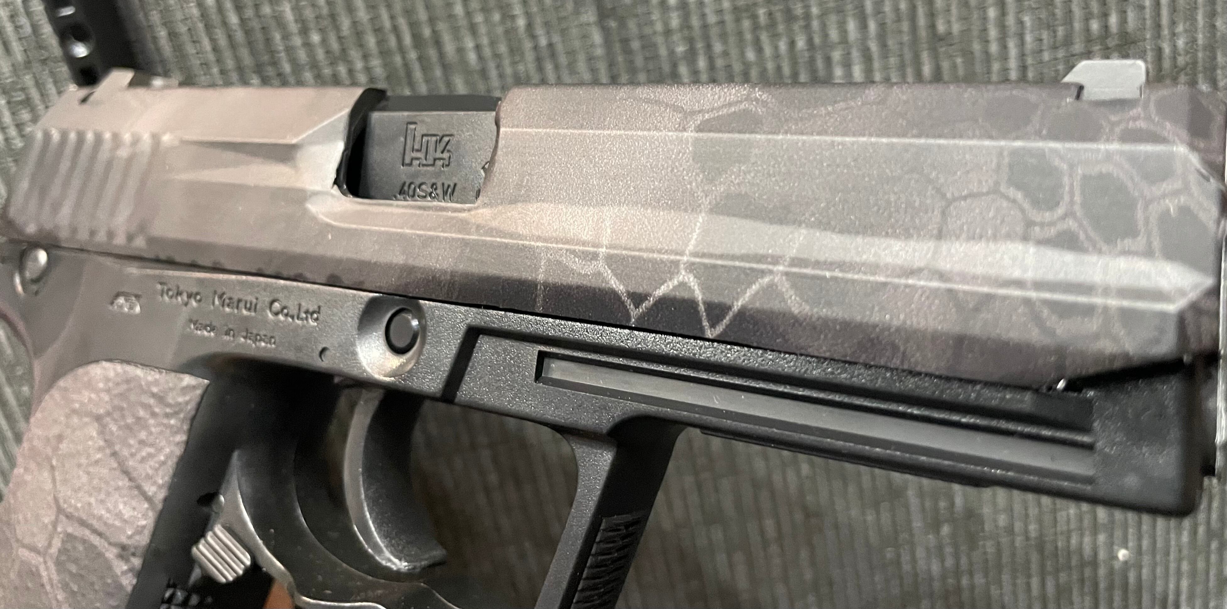 東京マルイ、エアコッキングガン「USP」にGunSkinsをアクセントラッピングを施しました!