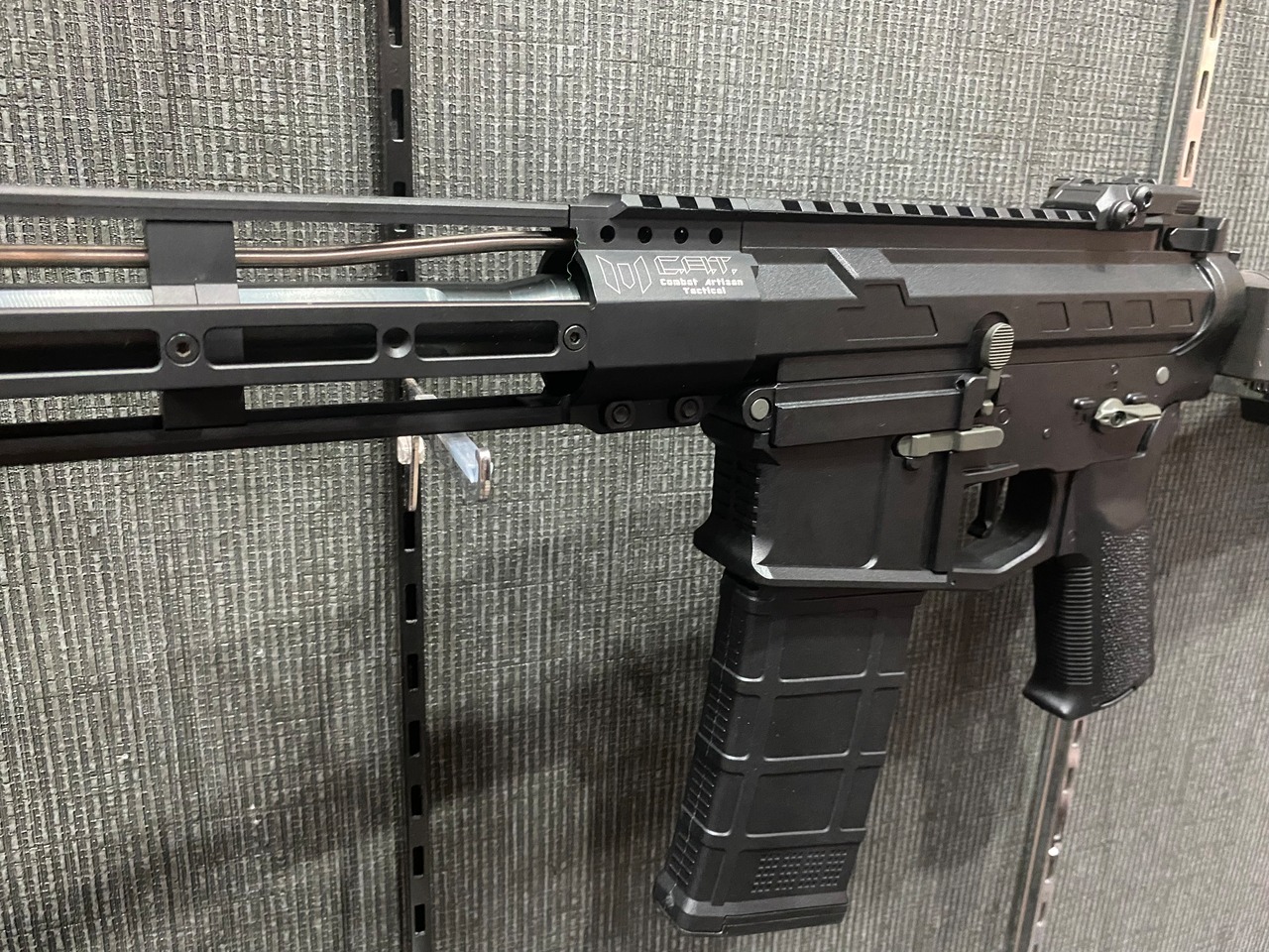 C.A.T.では一般的な電動AR15レシーバーの寸法でリアルなテイクダウン機構を再現するために、ピストンストロークのショート化を行いアッパーメカボックス後端を短縮しました。