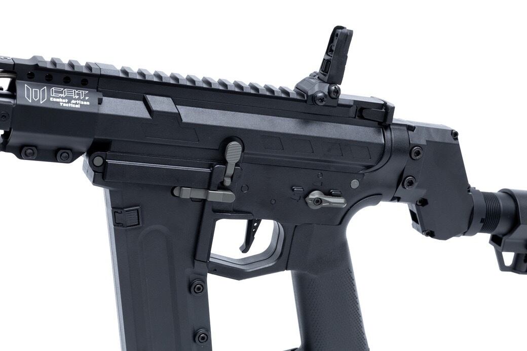 機械式可変プリコッキング機構と併せ、C.A.T.では従来型スイッチよりもセミオート射撃性に優れるマイクロスイッチ式を採用。