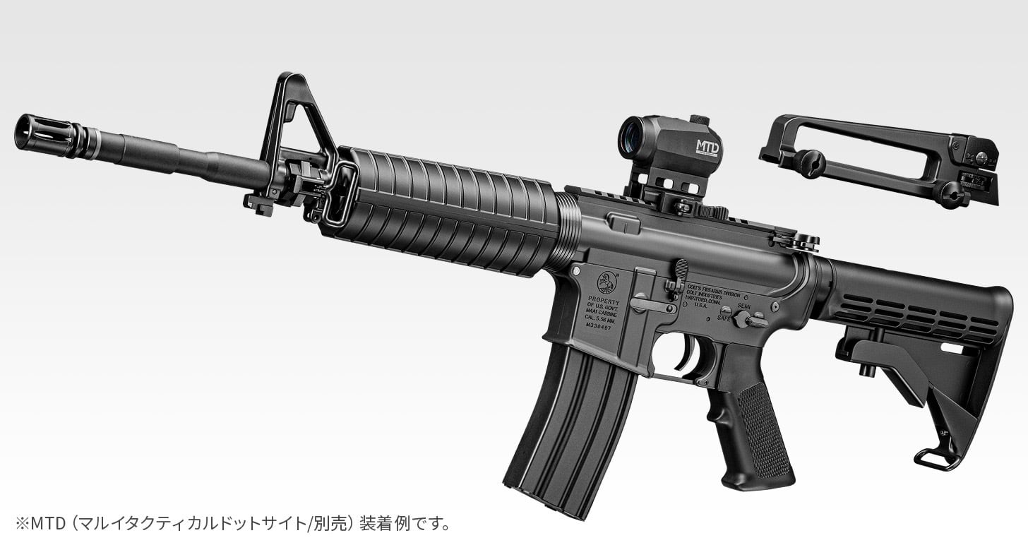 青少年育成条例の安全基準を満たした発射パワーで、サバイバルゲームを楽しめる命中精度を実現。外観パーツには『コルト M4A1カービン』と同様の素材を採用し、18才以上用の質感を17才以下でも安心して楽しめるハイエンドアイテムとなっています。