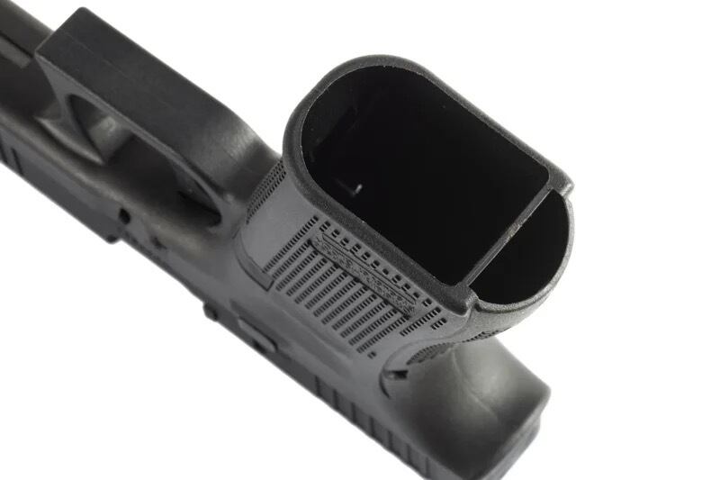 もっとも有名なポリマーフレームオート GLOCK G17 のコンパクトモデルG19をモデルアップしたCO2ガスガン GLOCK G19 Gen5 MOS CO2GBB 。CO2 8gマガジンを新設計し、G19のスタイルをCO2ガスガンで完全再現。BATON airsoft は GLOCKトイガンの日本正規ライセンスを取得し、GLOCK監修によりリアルな外観とリアル刻印を再現。特徴的なスライドカットやグリップパターン等の外見のリアルさだけでなく、独自の内部構造とすることで、樹脂スライドながら MOS(モジュラー・オプティック・システム)までも実装している。4種類のMOSプレートが付属し各社ダットサイトに対応。